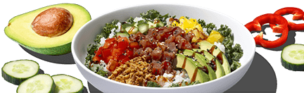 A combination of tuna, kale, sushi rice, red peppers, cucumbers, avocado, unagi sauce, pineapple, sesame seeds and crispy fried onions. Served with a side of Citrus Soy Vinaigrette.